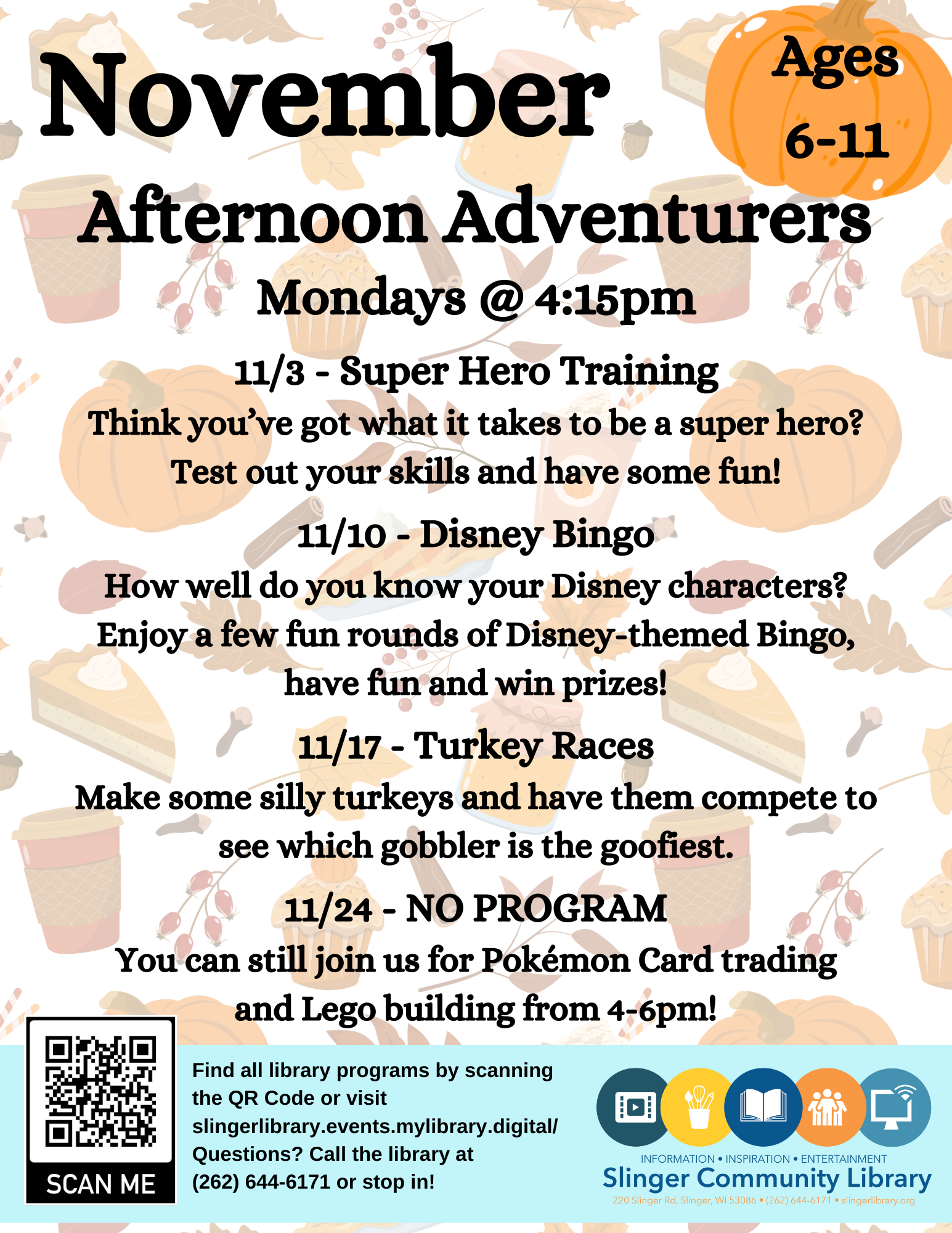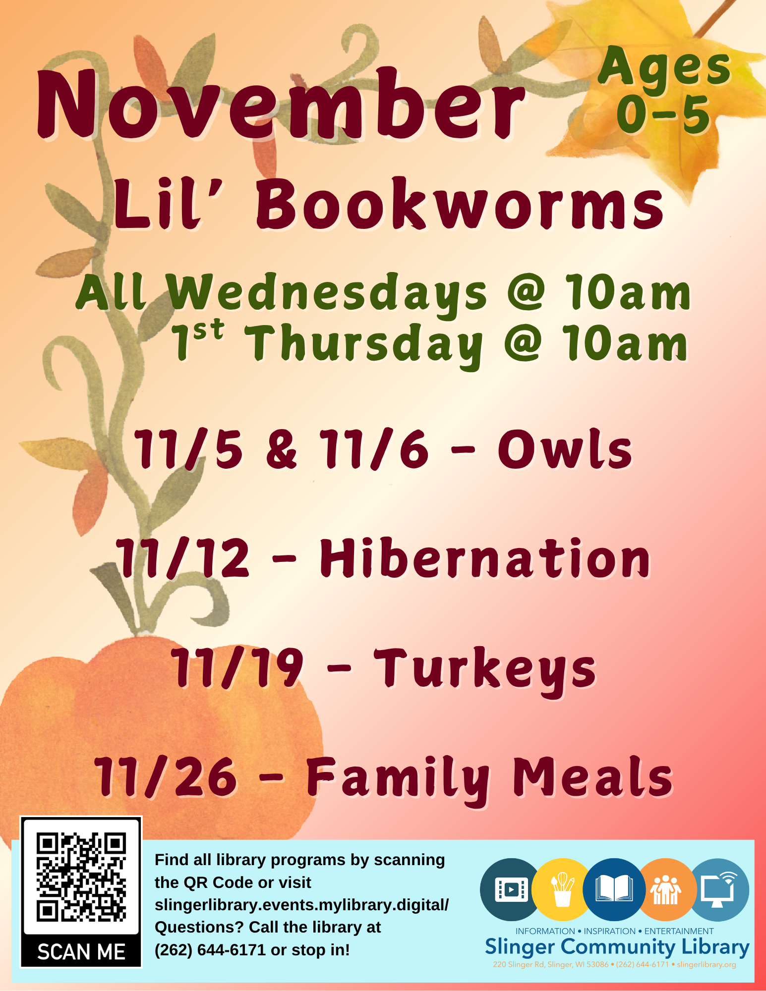 Please contact Youth Services Librarian Natalie Maksimuk by calling 262-644-6171 or emailing [email protected]