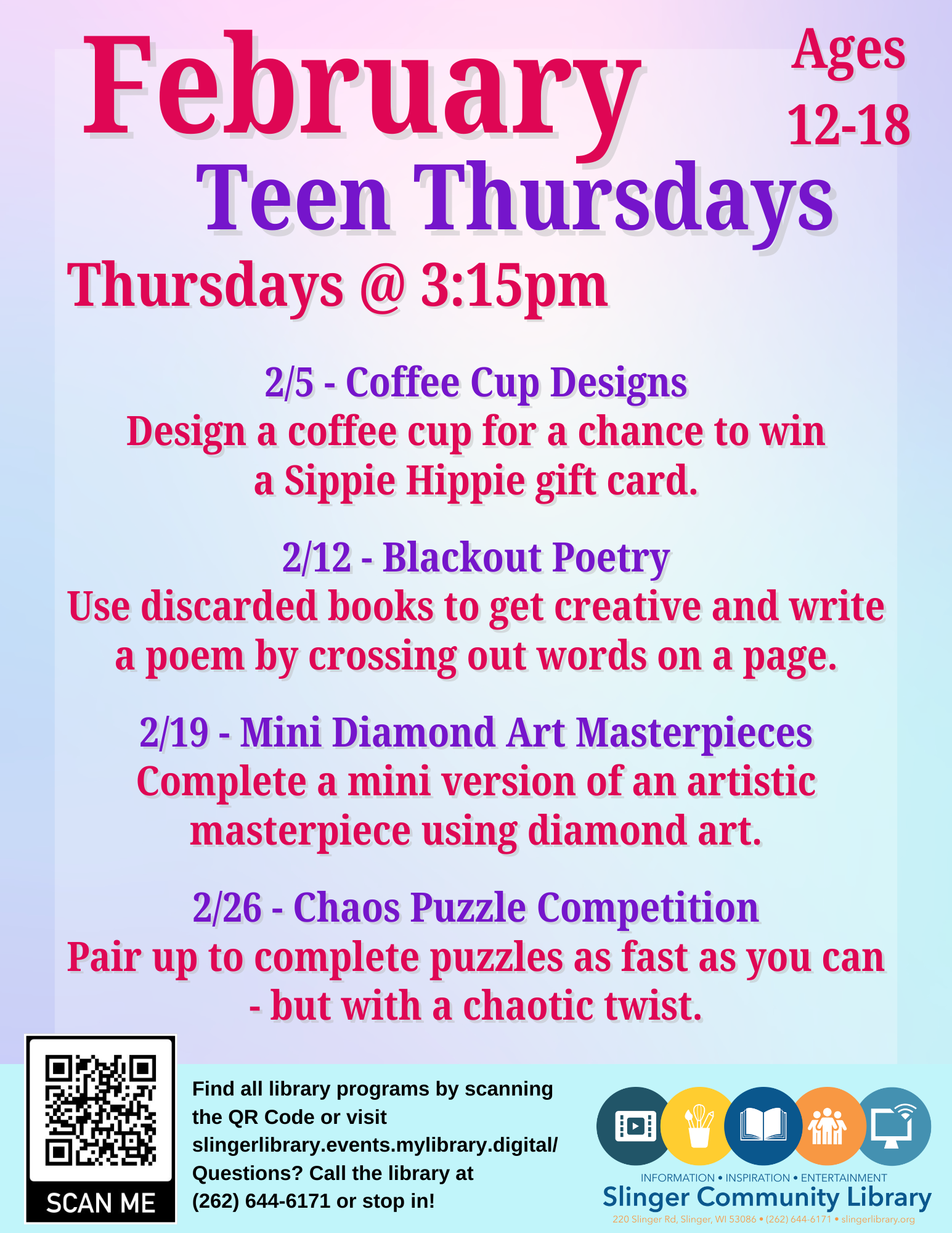 Interested applicants must be in 6th-12th grade to volunteer with the Youth Services department of the Slinger Community Library. Applicants must volunteer while the Youth Services Librarian is working, and will be overseen by the Youth Services library staff.