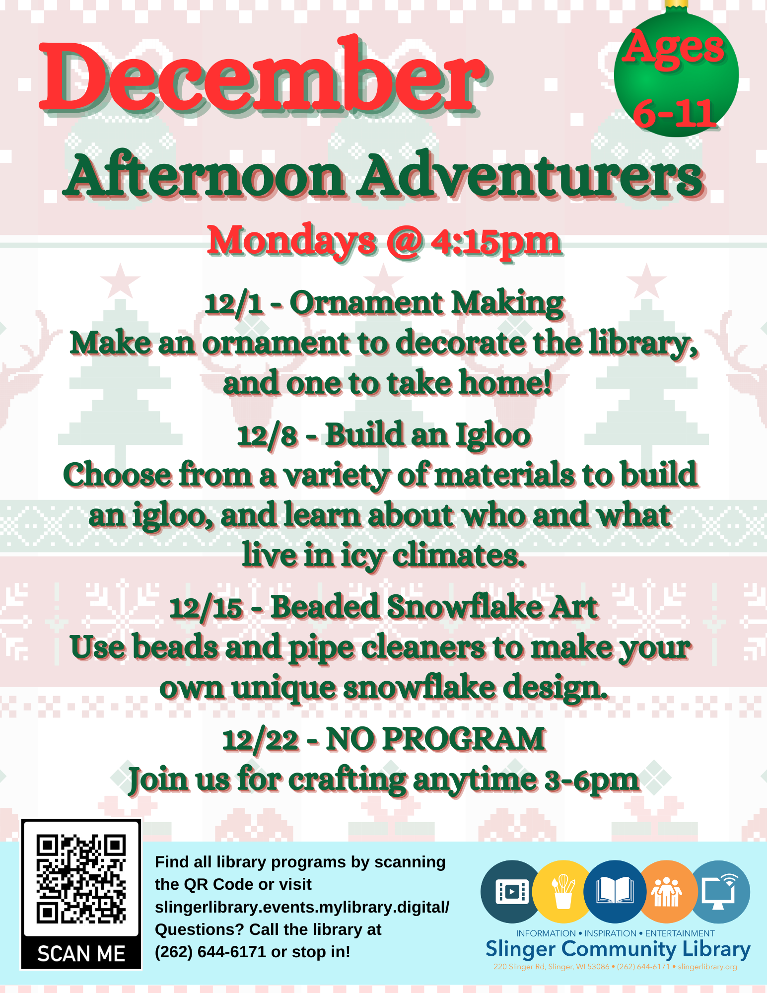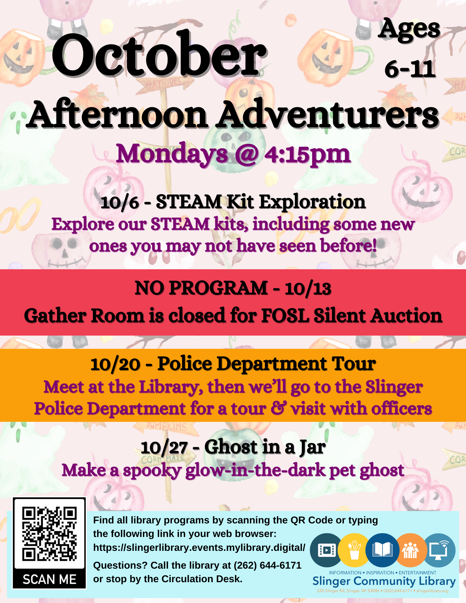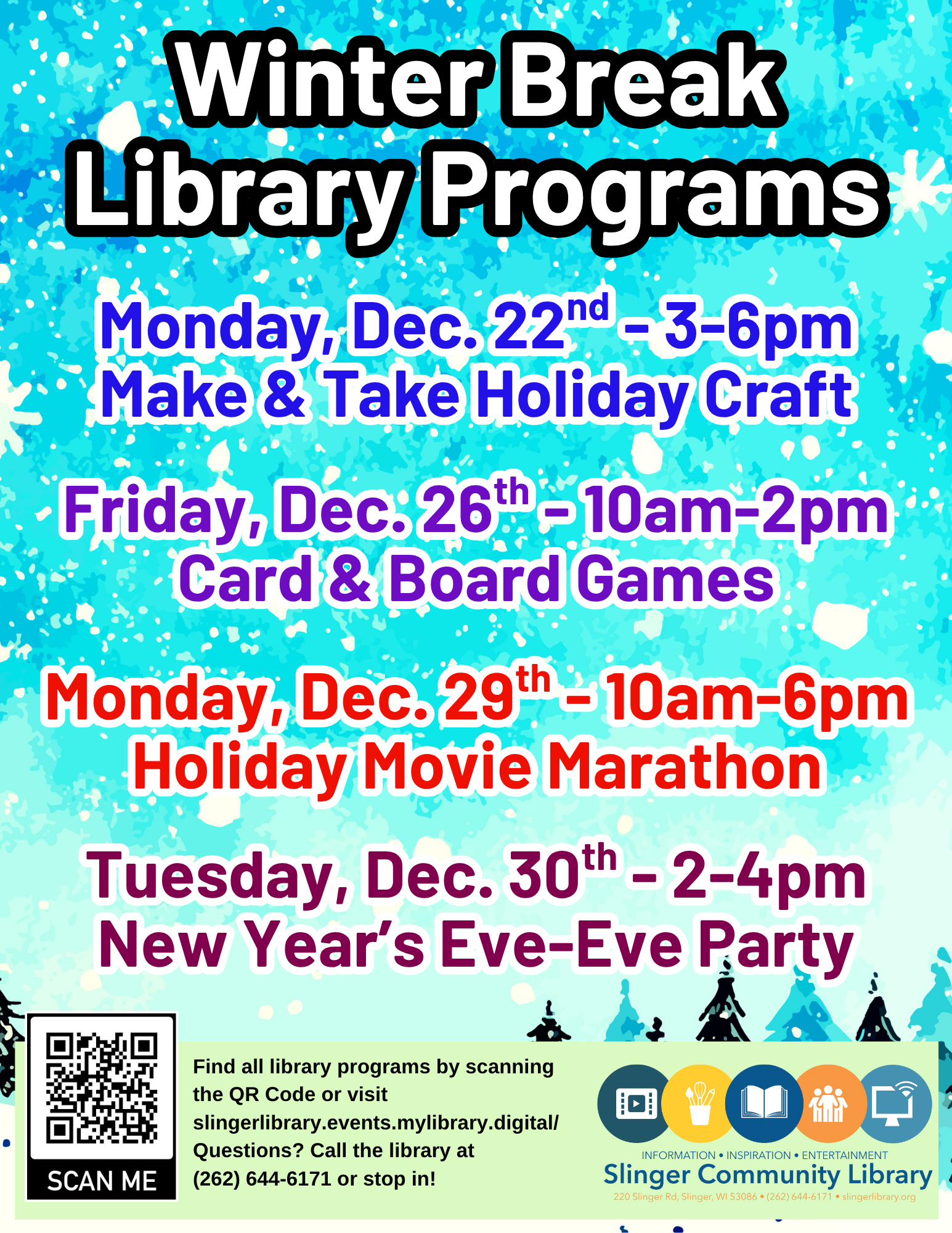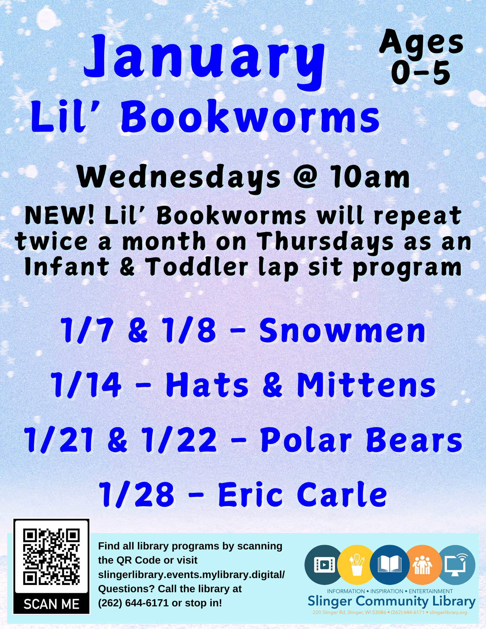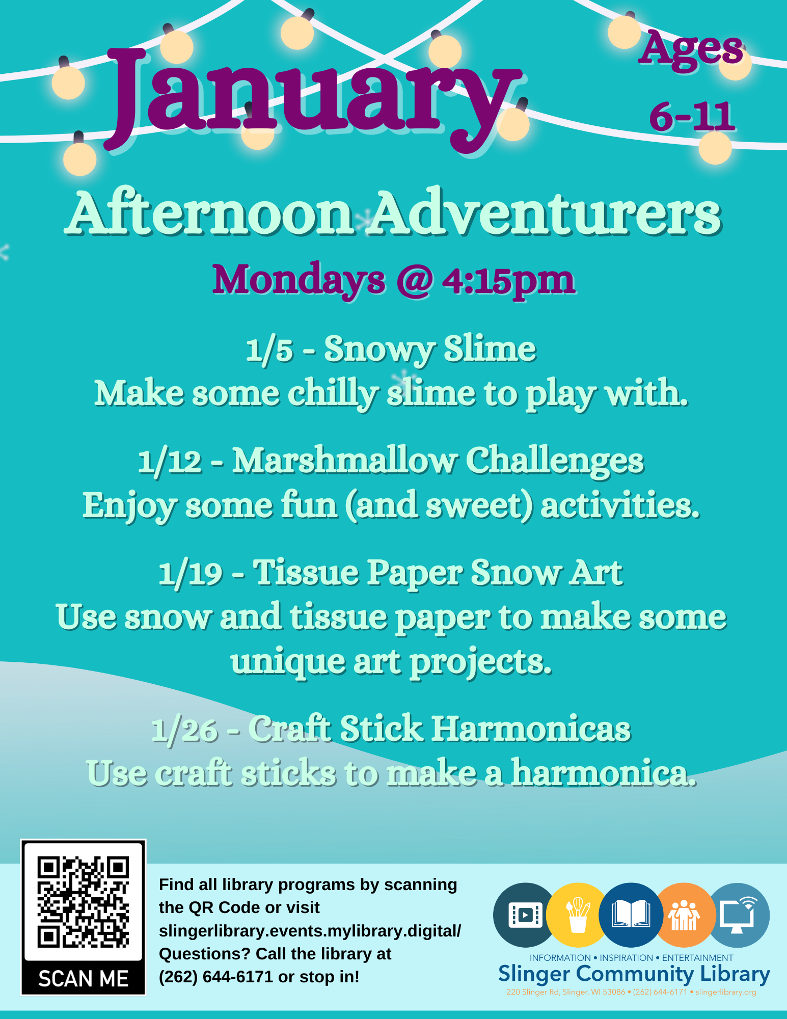 Please contact Youth Services Librarian Natalie Maksimuk by calling 262-644-6171 or emailing [email protected]