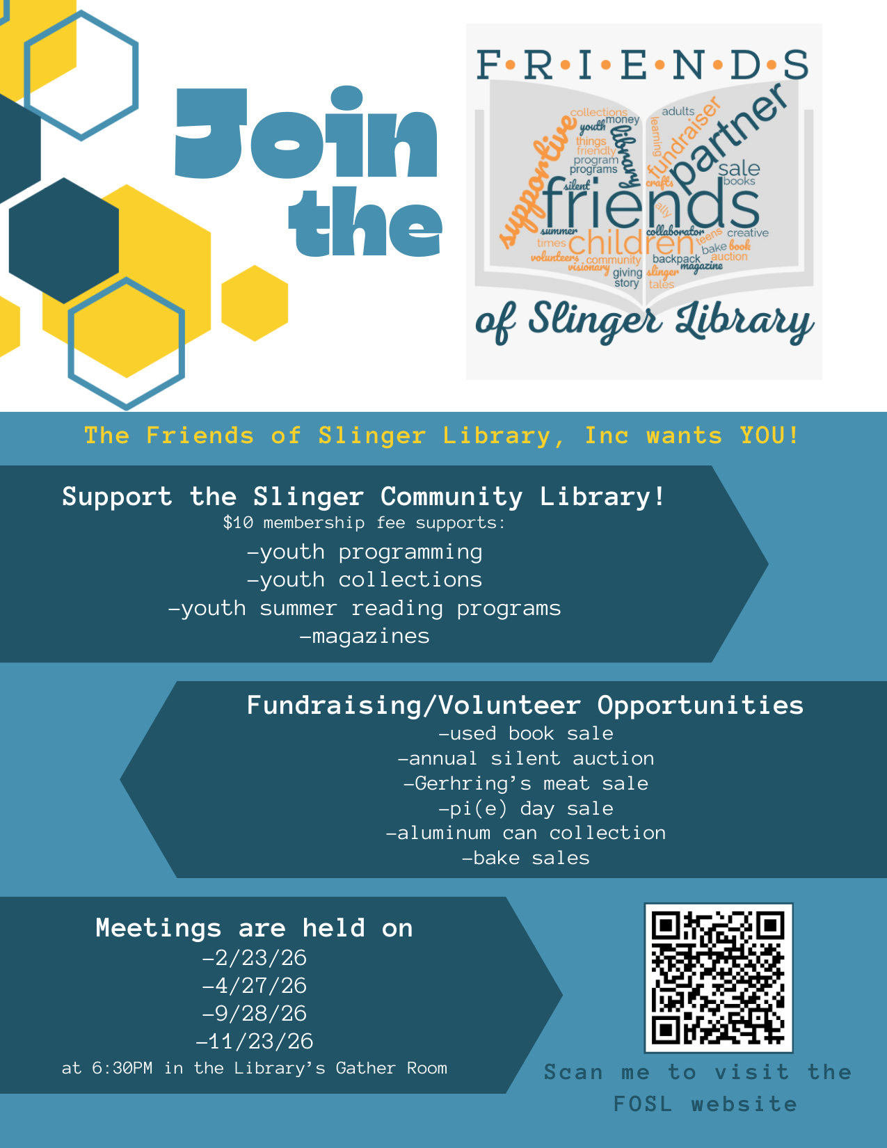 The Friends of Slinger Library, Inc want YOU!