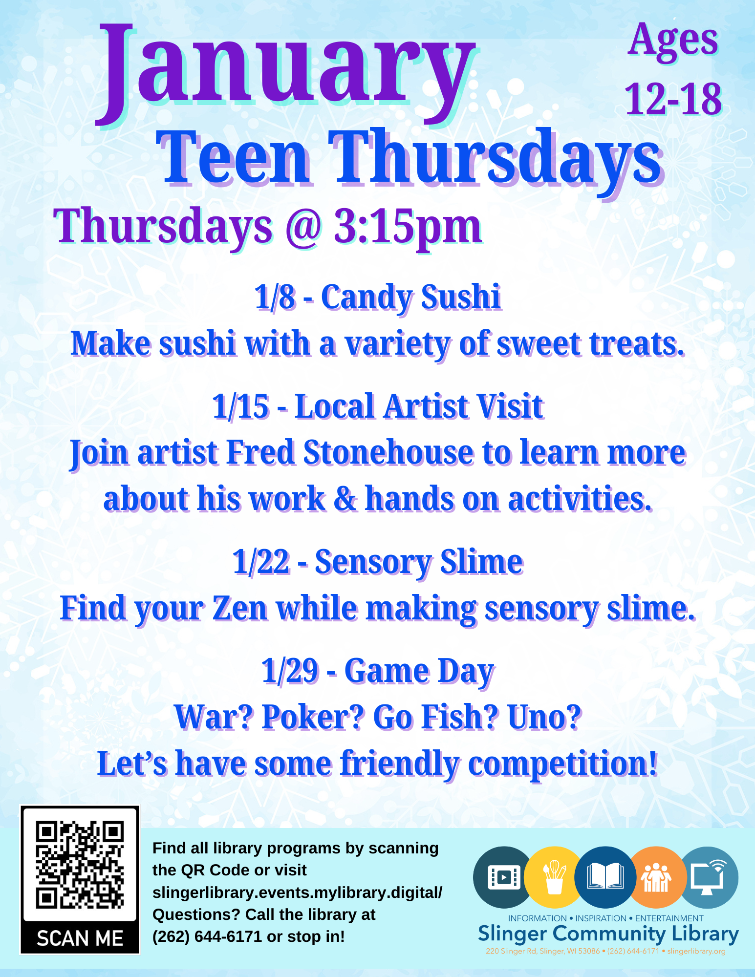 Interested applicants must be in 6th-12th grade to volunteer with the Youth Services department of the Slinger Community Library. Applicants must volunteer while the Youth Services Librarian is working, and will be overseen by the Youth Services library staff.
